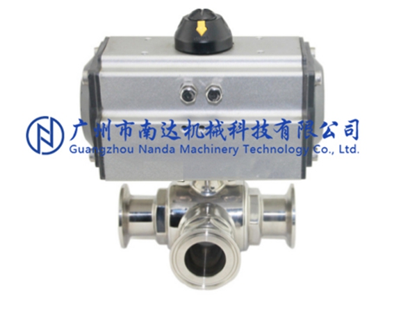 衛生級氣動三通球閥,是經過精密的檢驗流程和嚴格的品質管理。加工過程中,流道經過精密拋光和滅菌處理。其結構分為三通T型、三通L型,對介質起到分流、合流、換向等作用。密封圈為全封閉式緊緊包裹住閥球,無空間和死角。兩端為卡箍連接方便拆卸、清洗、維修工作原理也是通過氣動執行器90度的旋轉來帶動球體的旋轉以達到介質的流通與阻斷。